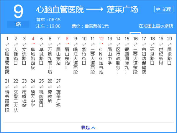 4、乘坐19路公交,在三苏大道东段下车,步行10m,即可到正健(眉山)生殖健康医院
